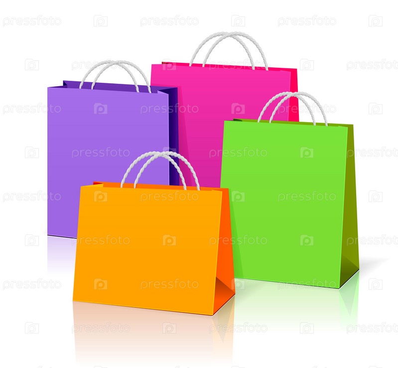 Бумажные пакеты для покупок на белом фоне