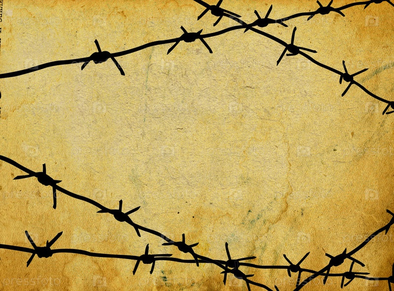 Колючая проволока на фоне страницы старой книги