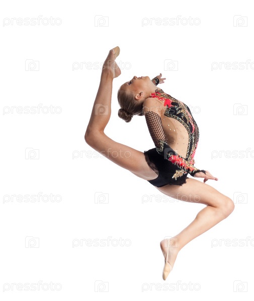 Профессиональная гимнастка на белом фоне