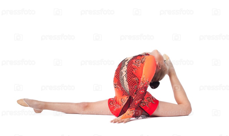 Профессиональная гимнастка на белом фоне