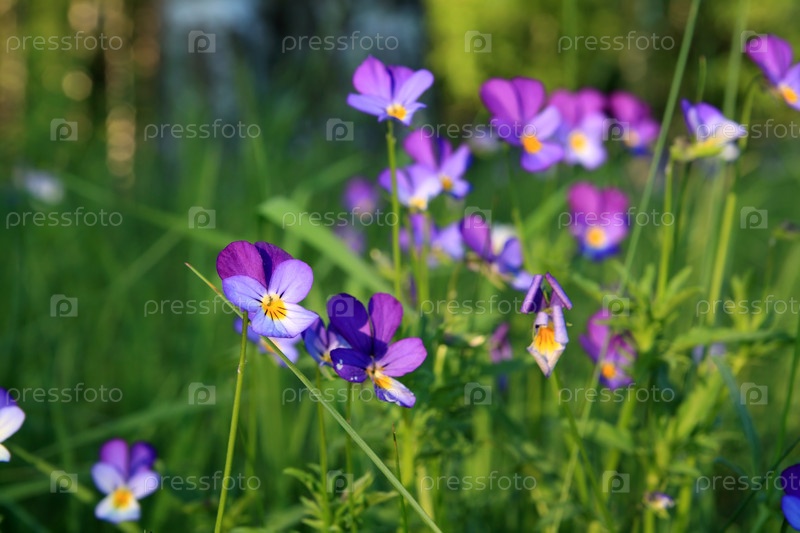 Фиалки в поле, крупный план