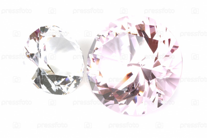 Два алмаза крупным планом на белом фоне