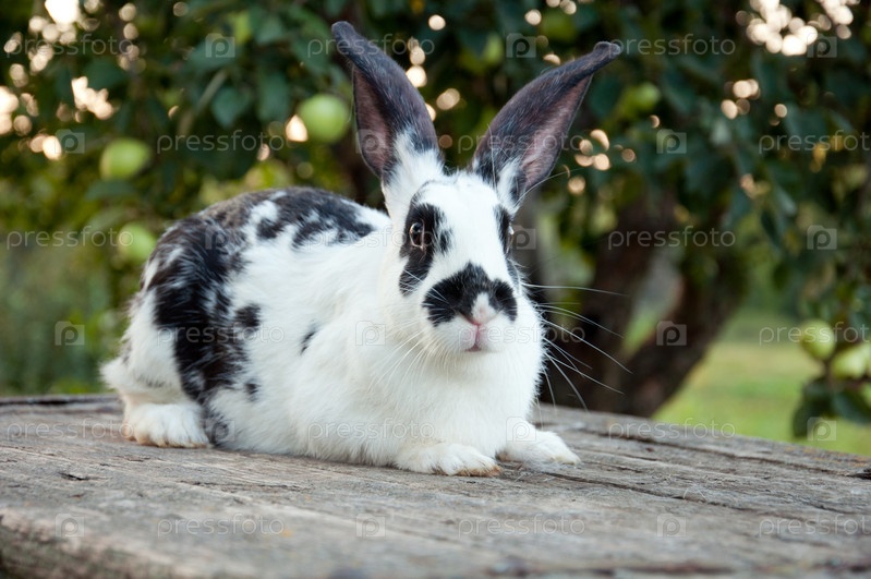 Черно-белый кролик в саду