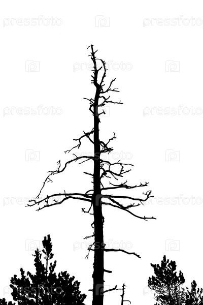 Силуэты сухих деревьев на белом фоне