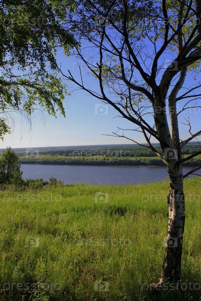 Береза на фоне реки