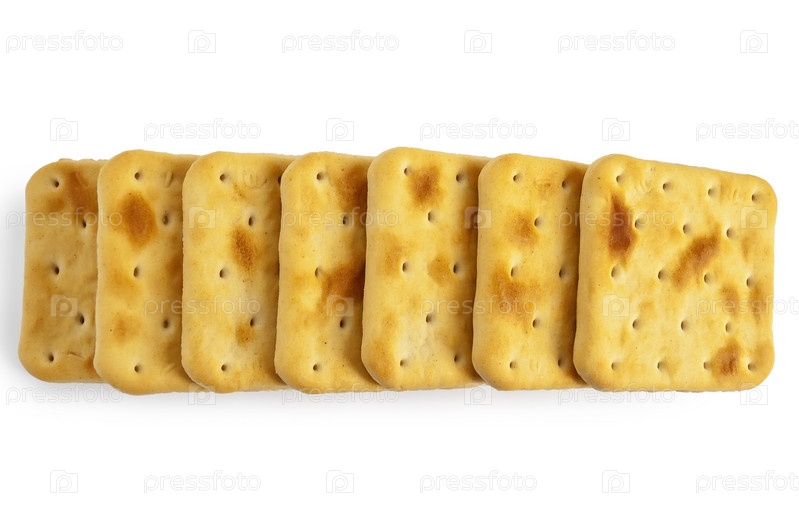 Ряд из нескольких крекеров на белом фоне