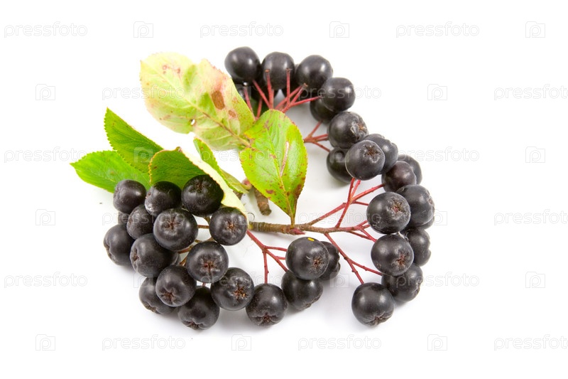 Ягоды черноплодной рябины на белом фоне