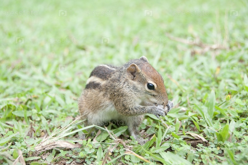 Бурундук на зеленой поляне крупным планом
