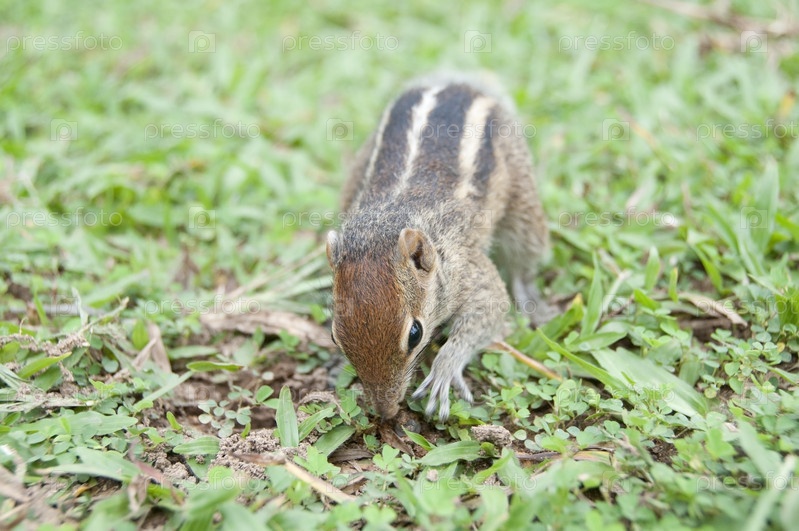Бурундук в поисках пищи крупным планом