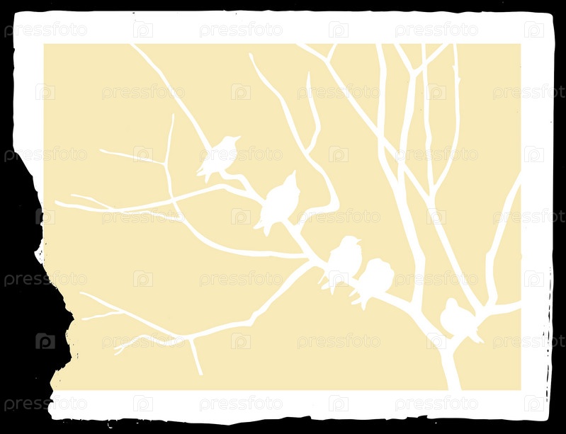 Декоративная рамка с изображением силуэтов птиц, сидящих на дереве