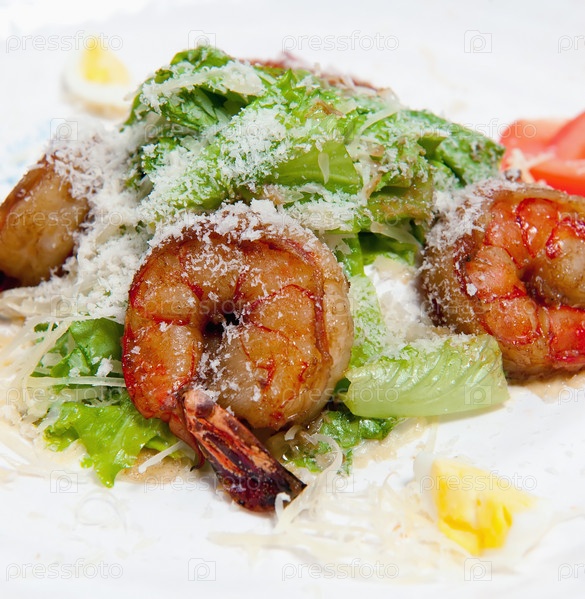 Салат с креветками на белом фоне