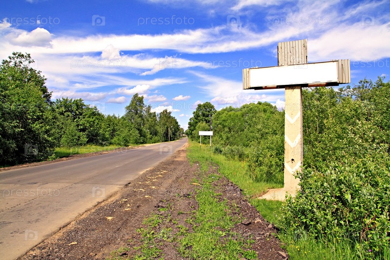 Пустой дорожный знак у проселочной дороги
