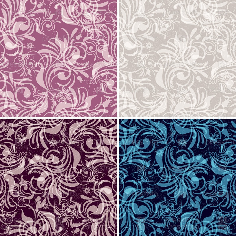 Винтажный цветочный бесшовный фон, набор