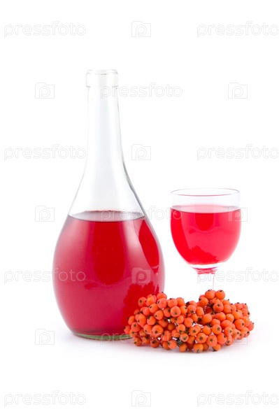 Красное вино и ягоды рябины, изолированные на белом фоне