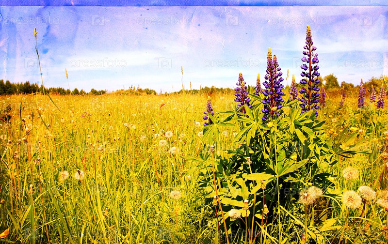 Винтажная фотография с изображением полевого пейзажа