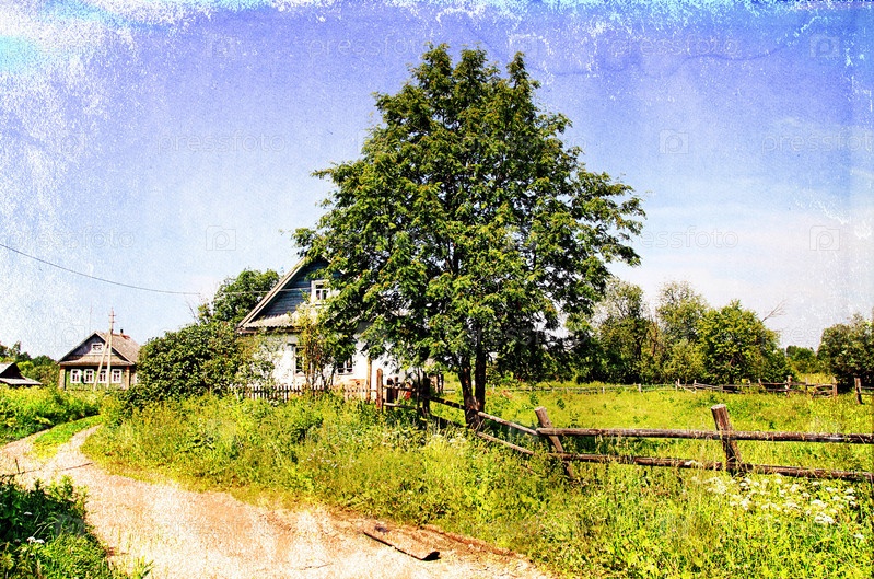 Винтажная фотография с изображением деревенского пейзажа