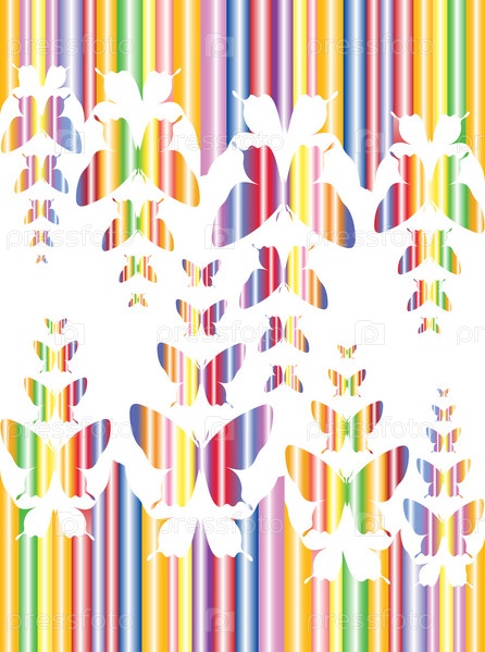 Трафареты бабочек на цветном полосатом фоне, иллюстрация