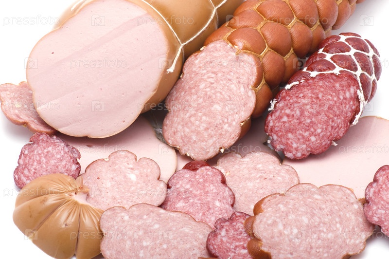 Колбасы на белом фоне