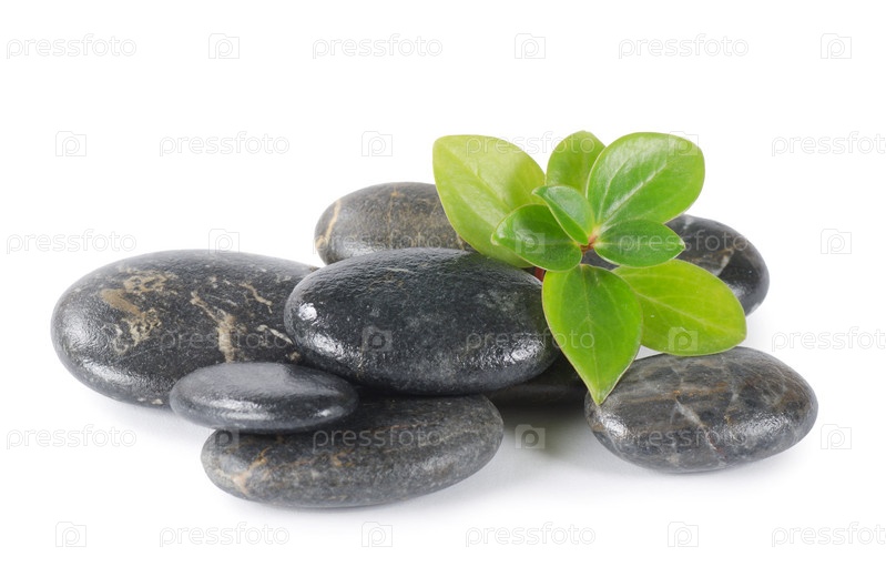 Галька и зеленое растение на белом фоне