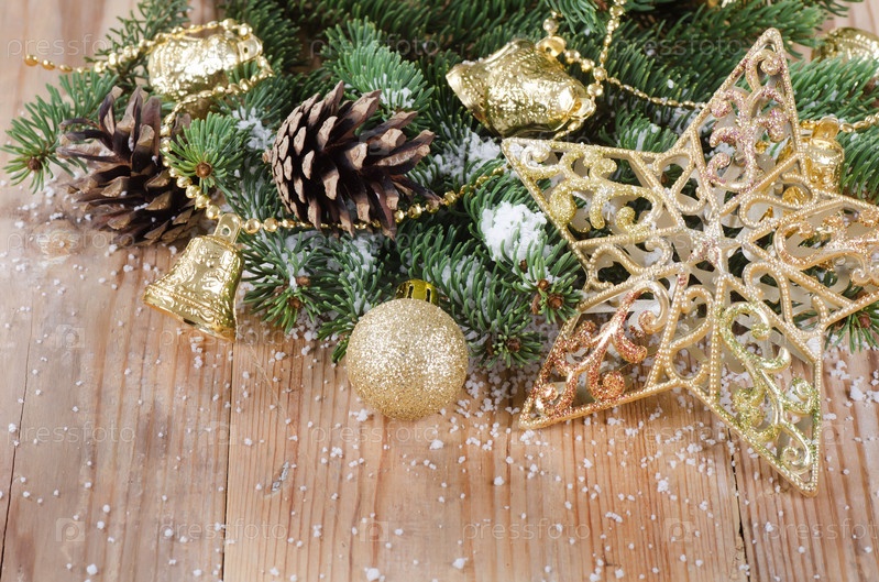 Новогодние украшения на деревянном полу