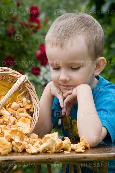 Мальчик с грибами на открытом воздухе