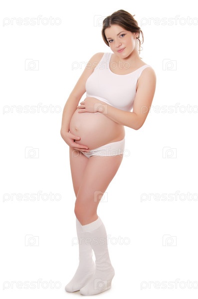 Беременная женщина на белом фоне