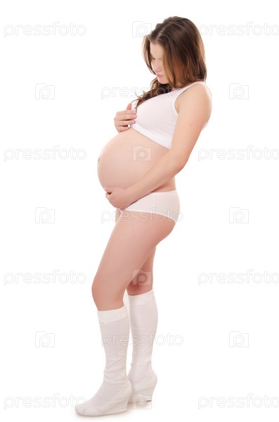 Беременная женщина на белом фоне