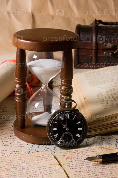 Старинные песочные часы и книги