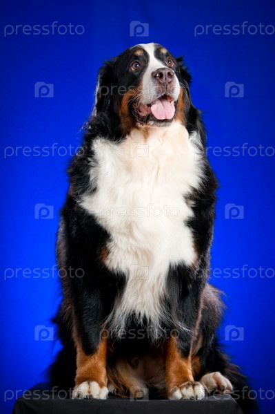 Бернский зенненхунд на синем фоне