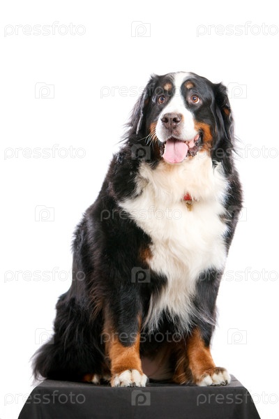 Бернский зенненхунд в ошейнике на белом фоне
