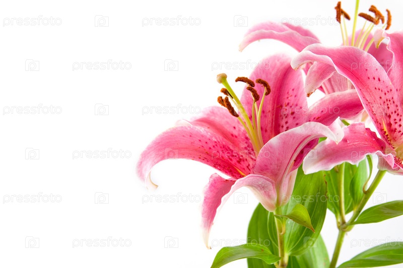 Цветы розовой лилии на белом фоне