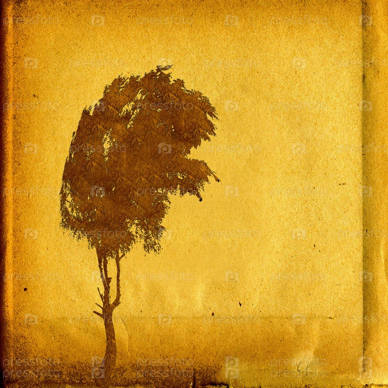 Силуэт березы на старом холсте