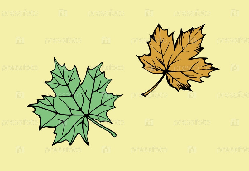Кленовые листья на желтом фоне, рисунок