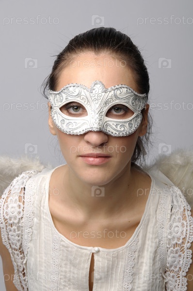 Молодая красивая женщина в маске и с крыльями