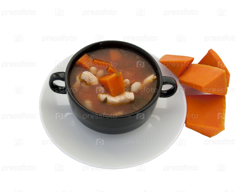 Вкусный суп на белом фоне
