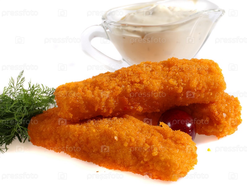 Рыбные палочки на белом фоне