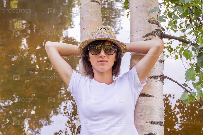 Девушка лежит на дереве