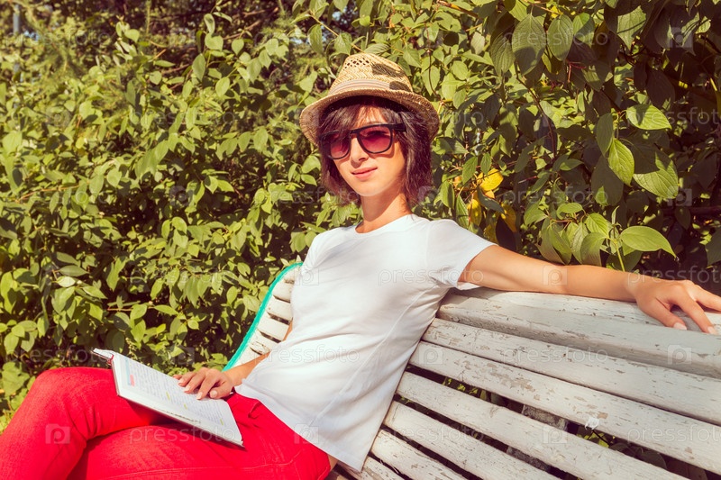 Женщина лежит на скамейке