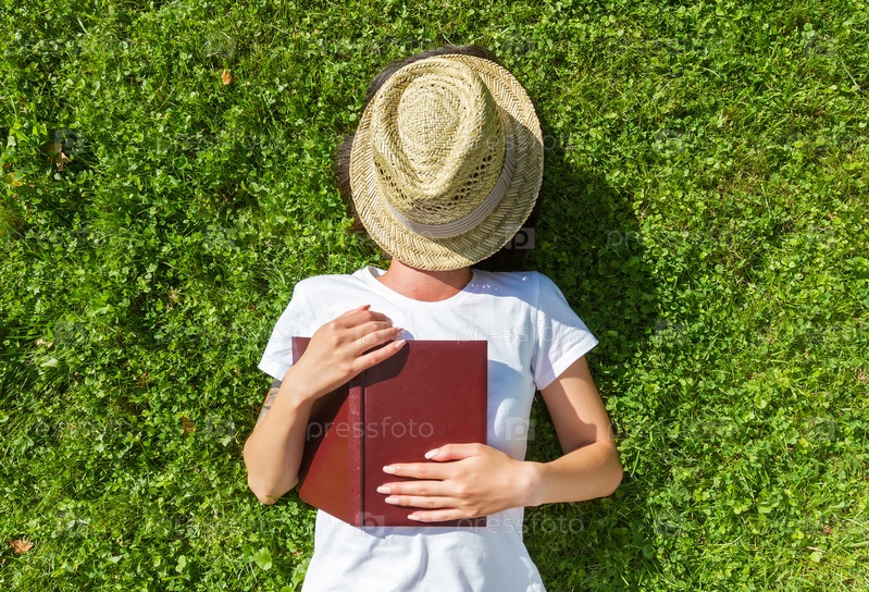 Девушка, лежа на поле