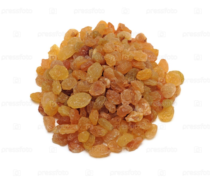 Горсть изюма на белом фоне