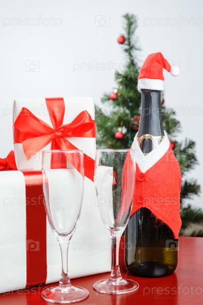 Подарочная коробка и шампанское