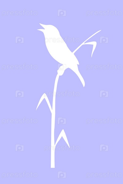 Силуэт птицы на тростнике, иллюстрация на сиреневом фоне