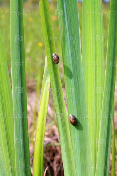 Две улитки на листе осоки