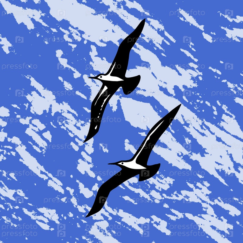 Две чайки парят в небе, иллюстрация