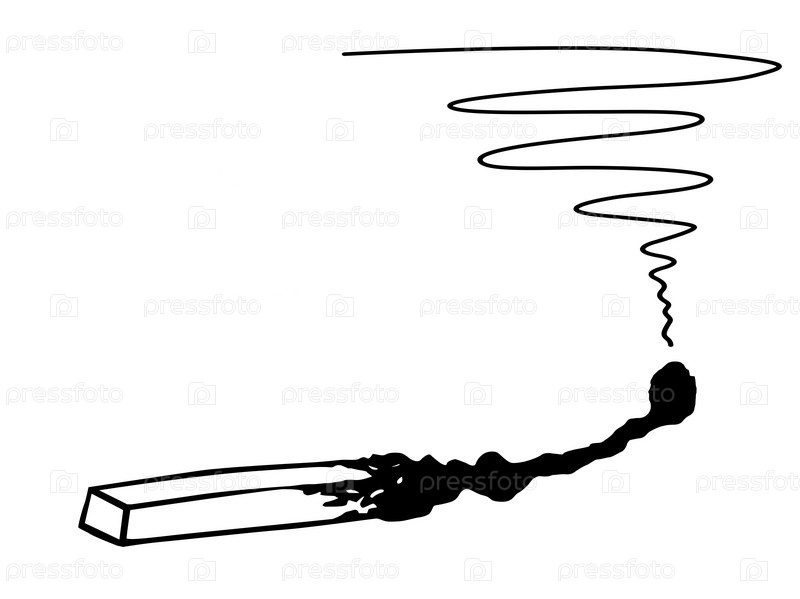Сгоревшая дымящаяся спичка, иллюстрация на белом фоне