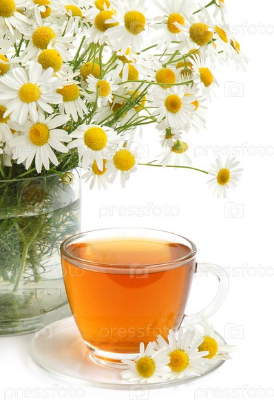Чай с ромашкой на белом фоне