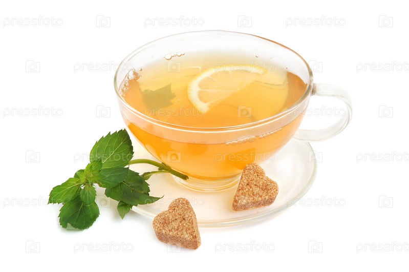 Чай с лимоном и мятой на белом фоне
