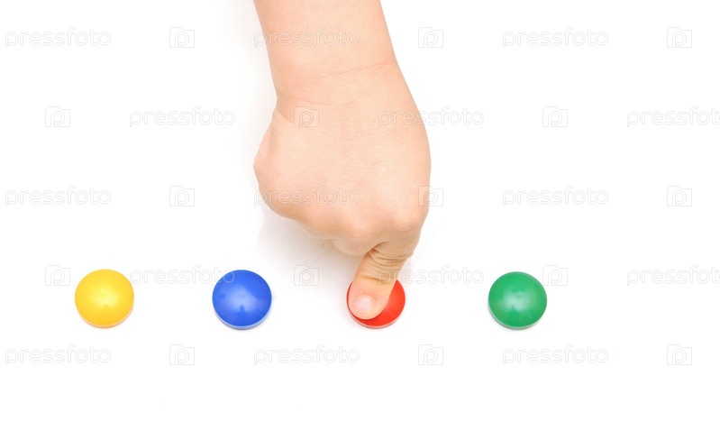 Разноцветные кнопки и рука нажимающего на одну из них