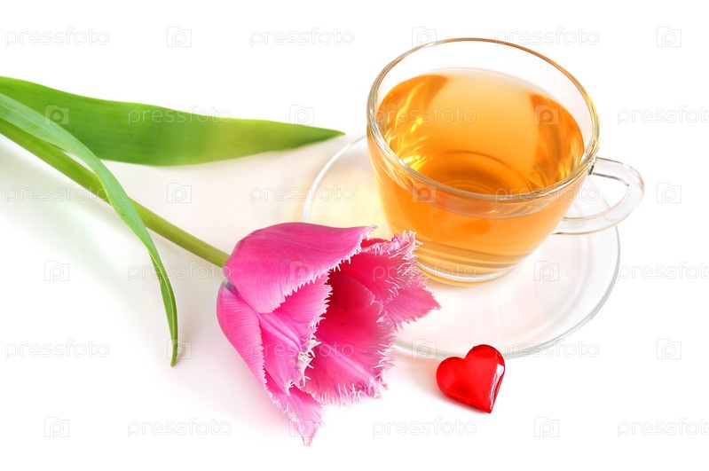 Чай и цветок на белом фоне