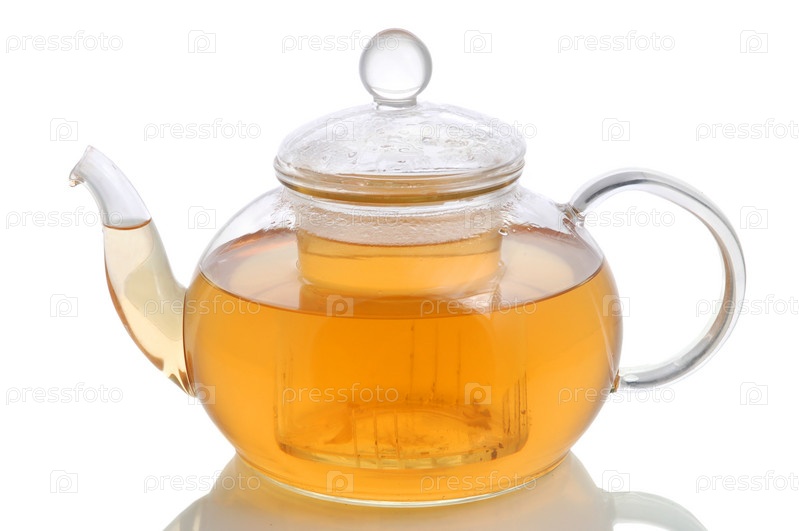 Чай в стеклянном чайнике на белом фоне